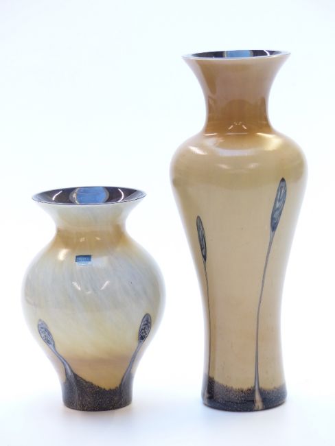 Two Caithness overlaid glass vases both with trailed decoration, largest 25cm tall