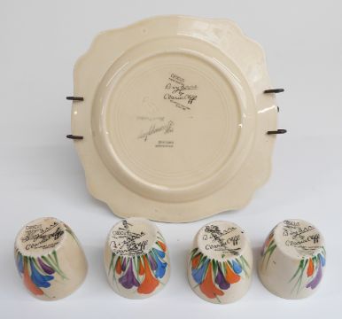 Clarice Cliff for Newport Pottery Bizarre egg cruet with unusual basket handle, in Crocus pattern, H14cm