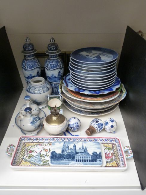 Copenhagen Christmas plates, mainly 1970s, Delft including twin-handled armorial tray, covered vases etc
