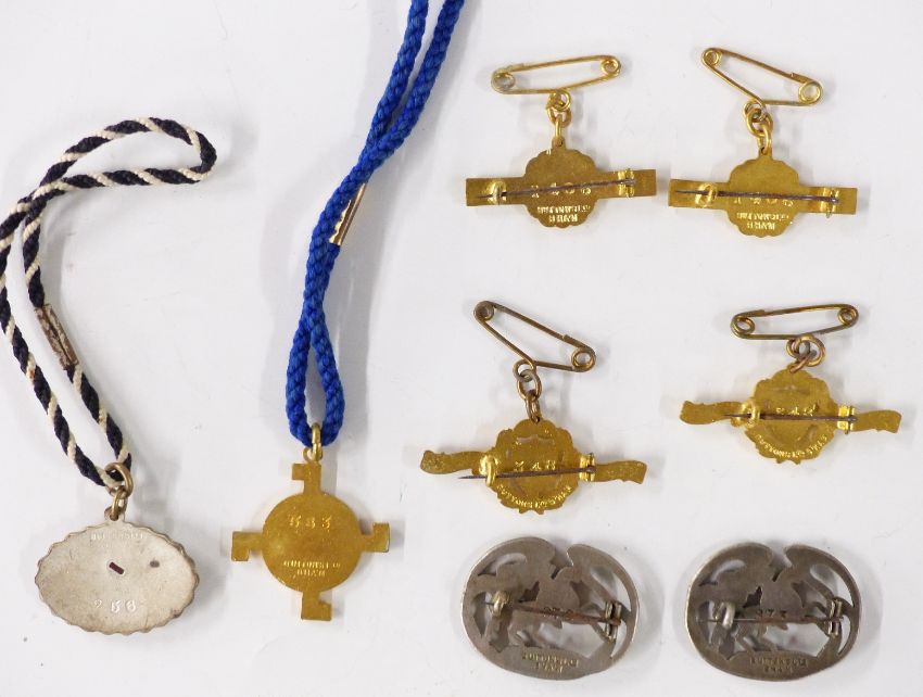 Eight 1920s Sandown horse racing enamel badges, each with member's number to rear, comprising 1920, 1921, and two each of 1923, 1924 and 1925