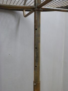Ex Superdry industrial style circular adjustable height shop fitting clothes rail with four castors to base, diameter 83 height 195cm
