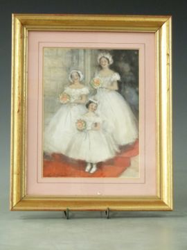 John Strickland Goodall (1908-1996) 'The Bridesmaids'  watercolour with pencil heightened with white body-colour, signed lower left, 19 x 14 cm (7.5 x 5.5 ins) mounted & framed