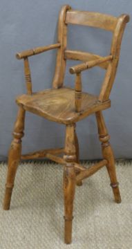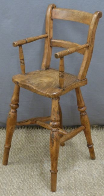 19thC or early 20thC child's highchair with elm seat, height 83cm
