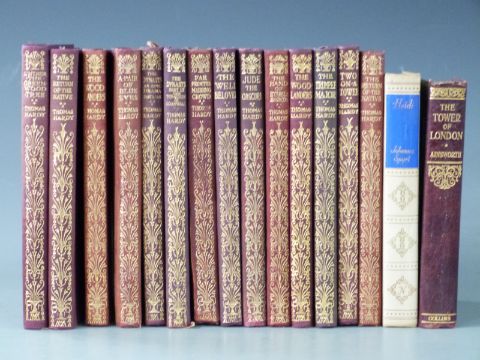 Thomas Hardy Far From The Madding Crowd, Under The Green Wood Tree, Jude The Obscure and other titles from The Wessex Novels a collection of 1920s pocket volumes published by Macmillan and bound in full leatherette with elaborate gilt decorated spines & cover, with copy of Heidi and another (16)