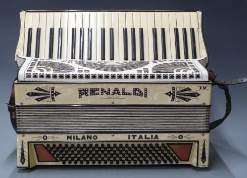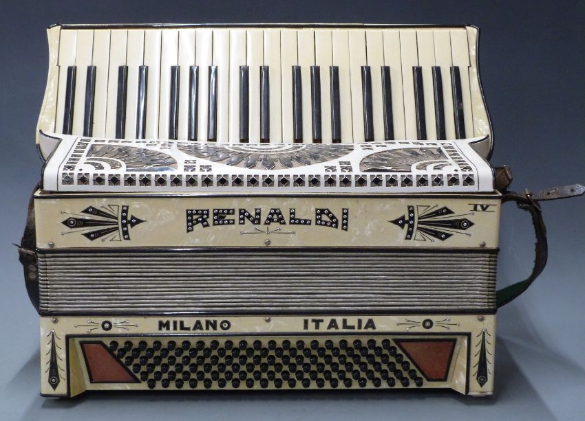 Renaldi Italian 120 bass piano accordion c1930's, in ivory pearloid finish with diamante decoration, in original carry case