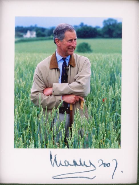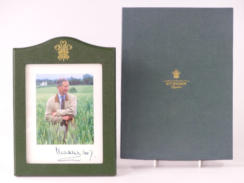 HRH Prince Charles signed/autographed presentation photograph in Ettinger leather easel backed frame in original box, the frame, H24cm