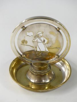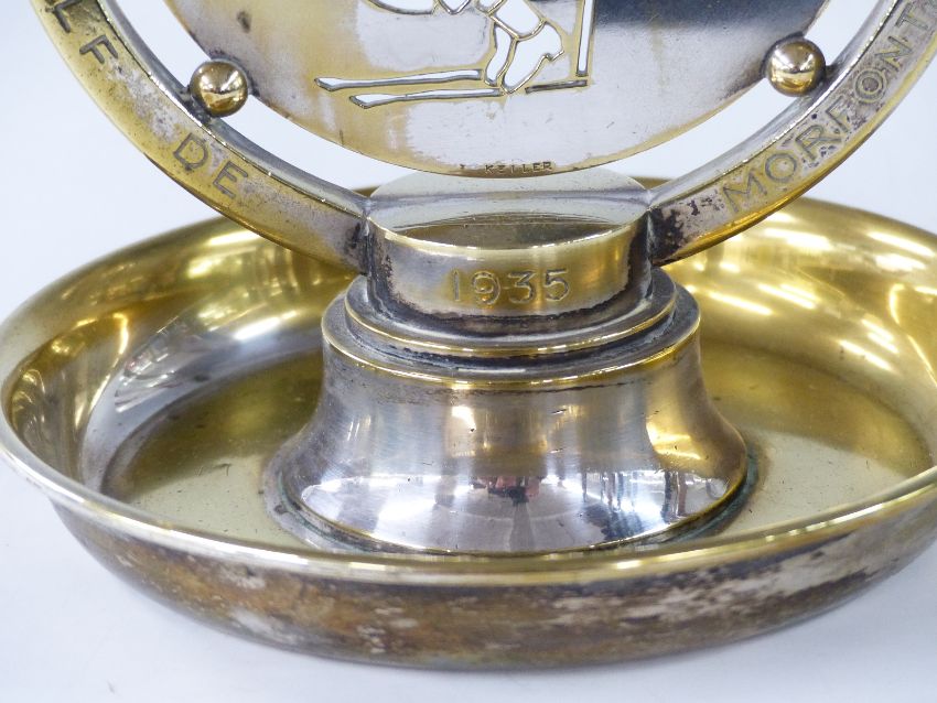 Art Deco Coupe de Figaro Morfontaine golfing trophy by Keller dated 1935, with period central golfing scene, height 19cm