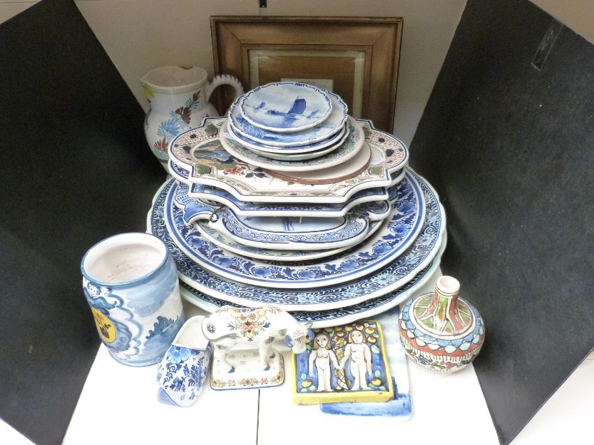 Continental ceramics including Quimper, Delft plaques, chargers and plates