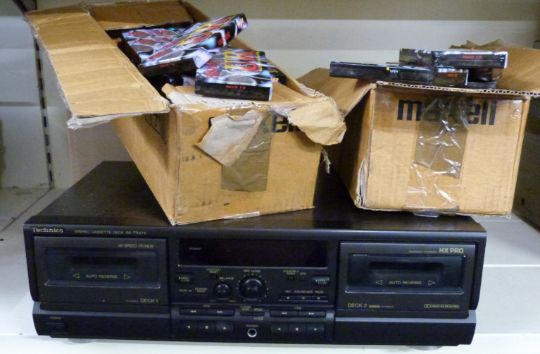 Technics RS-TR474 double auto reverse cassette deck with auto calibration, together with a large quantity of new, blank tape cassettes