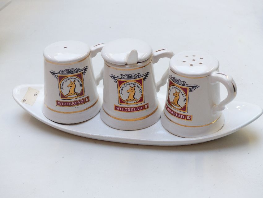 Whitbread and Niblett & Co brewerania including tankards, cruets etc