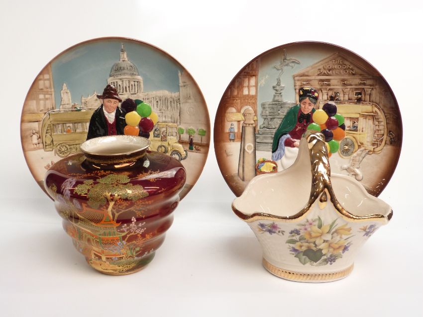Carltonware Rouge Royale vase, two Royal Doulton balloon seller plates etc