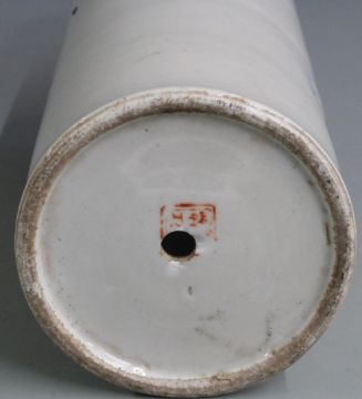 Chinese cylindrical vase with owl decoration, H 28cm