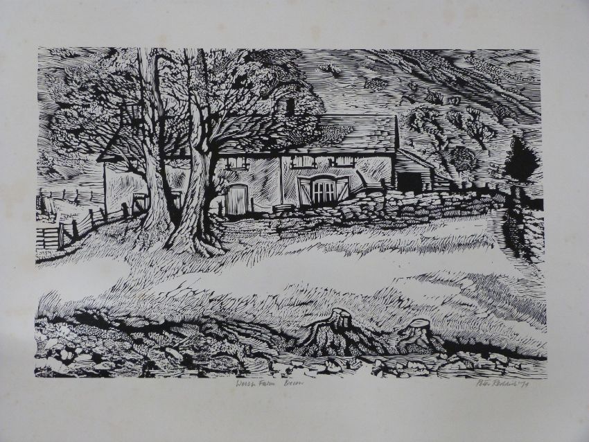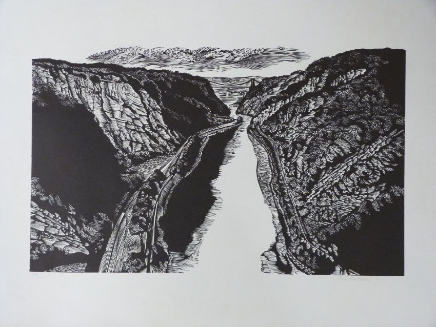Four Peter Reddick (1924-2010) signed woodcut prints comprising limited edition (66/200) view of the Avon Gorge with Clifton Suspension Bridge, Bristol, Glastonbury Tor, boats in harbour and one of a Welsh Cottage, largest 51 x 76cm