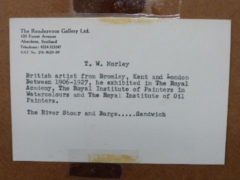 Thomas W Morley(1859-1925) watercolour 'The River Stour' and 'Old Brewery, Sandwich, Kent', signed lower right, 34.5 x 51cm
