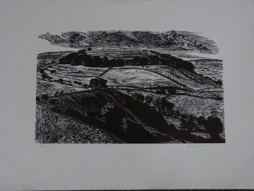 Three Peter Reddick (1924-2010) signed limited edition woodcut prints comprising two entitled Camelot (82/200 and 64/200) one White Cliffs of Dover (72/75) and five further similar etchings including Jill Lewis and Pat Hennessy, largest 51 x 76cm overall