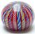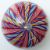 Peter McDougall glass paperweight with multi-coloured and white latticino tubes and central millefiori cane, all over red ground and signed PMD cane to the base, 70mm in diameter.