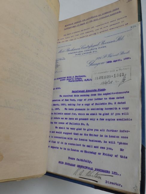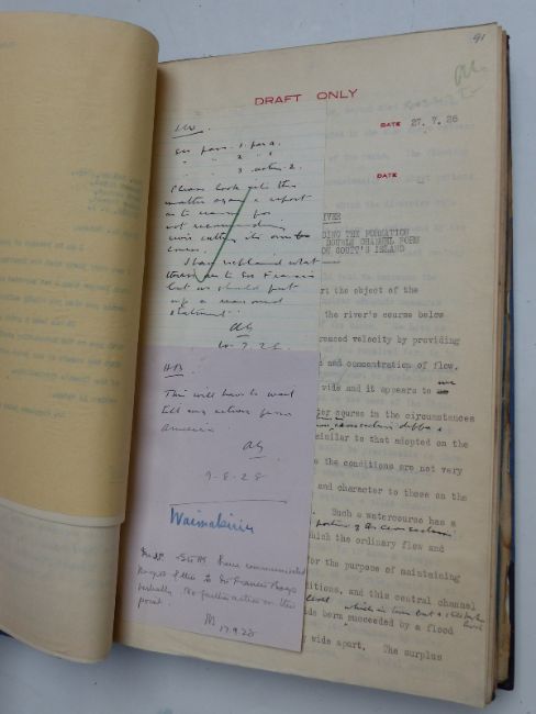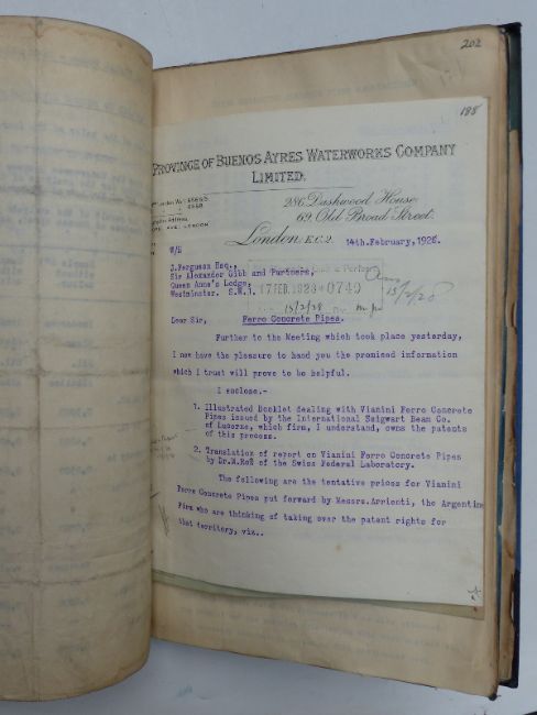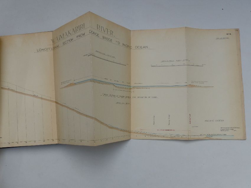 A 1920's bound volume of civil engineering interest correspondence relating to the Waimakariri river control New Zealand and Buenos Ayres Waterworks Company Ltd, being the bound records of Alexander Gibb & Partners, Queen Anne's Lodge, Westminster, including many fold out maps of the river and New Zealand, correspondence with contractors and suppliers etc