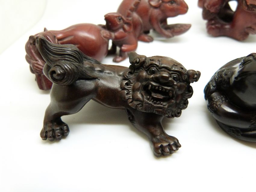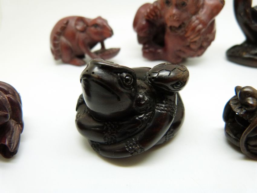 Eight wooden Japanese netsukes, all signed
