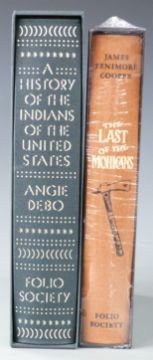 James Fenimore Cooper, The Last of the Mohicans (London, Folio Society).  Brown printed cloth.  Black slipcase.  Shrink wrapped.  Angie Bond, A History of the Indians of the United States (London, Folio Society, 2003).  Pressed in full buckram with printed panel.  Green slipcase.  2 volumes.