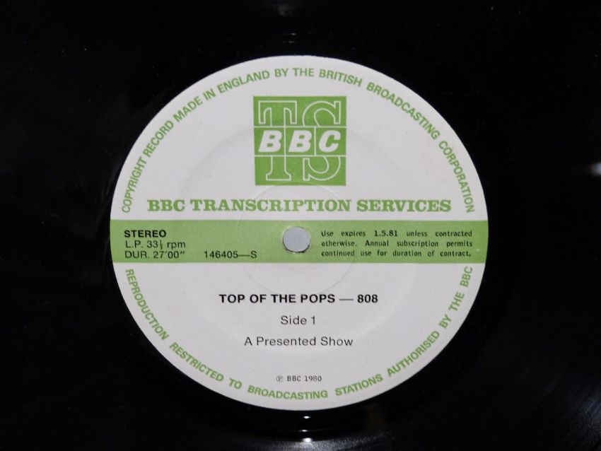 BBC Transcription Disc. Top of the Pops - 808, record appears Ex without coverProperty of former member of Nimbus direct to disc recording studio and bespoke manufacturing at Wyastone Leys, Monmouth