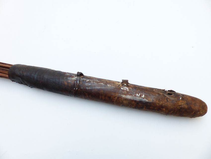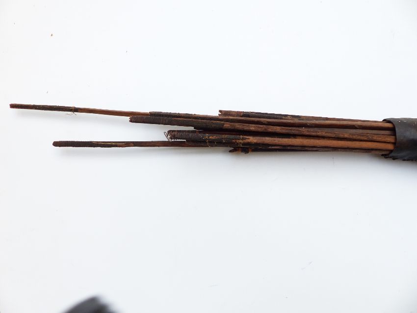 A 19thC leather covered quiver of arrows, probably Kalahari / Botswana region