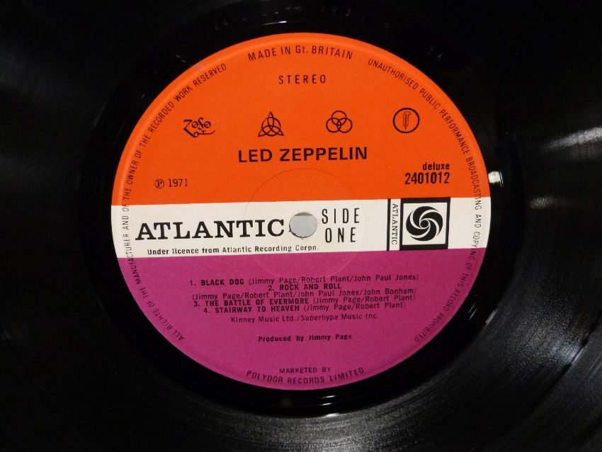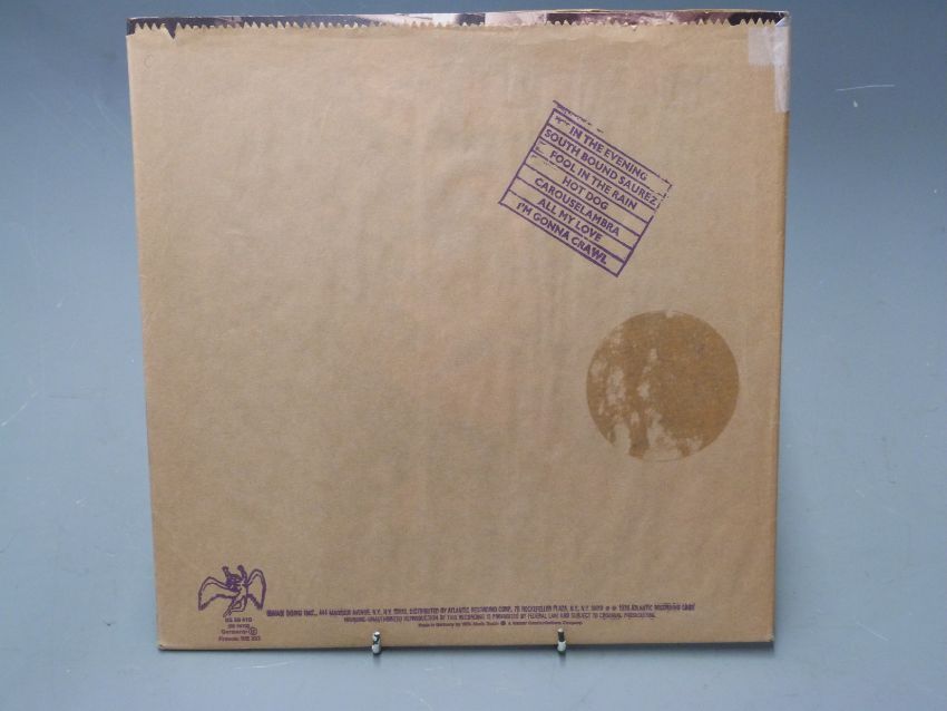Led Zeppelin - Led Zeppelin IV (2401012) red/plum; Physical Graffiti (K89400) German issue; In Through the Out Door (SSK59410) and In Through the Out Door (SS59410) German issue