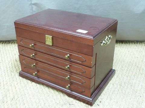 Thomas Pacconi jewellery box with hinged lid and four drawers below, width 40cm