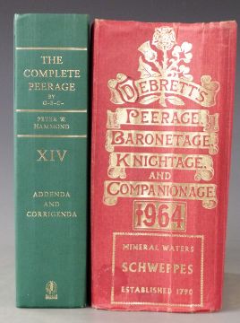 Debrett’s Peerage, Baronetage, Knightage & Companionage 162nd Year 1964 with several colour plates bound in ornate gold & black decorated cloth and The Complete Peerage or History of The House of Lords and all its Members from the Earliest Times (2)