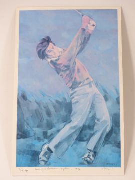 Signed limited edition artist's proof 5/80 Severiano Ballesteros golfing print, 43 x 28cm