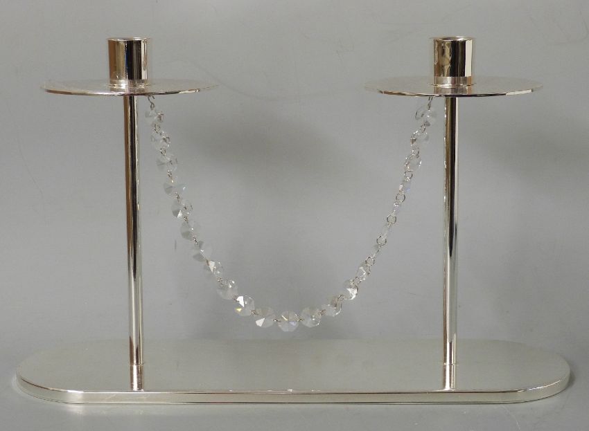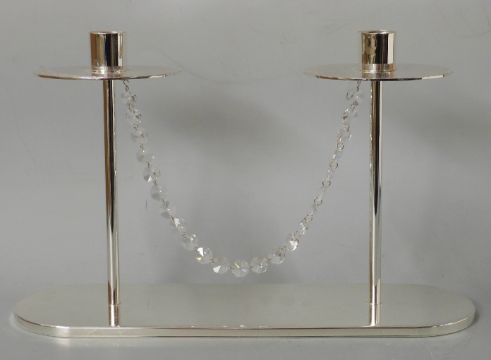Wedgwood plated candelabra with crystal swag, in original box and packaging