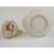 Meissen lobed cabinet cup and saucer decorated with Watteau scenes and floral panels on a yellow ground, H8.5cm
