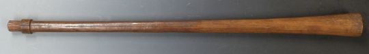 A 19thC Aboriginal war club of tapering form with carved ridged decoration along approximately half of the club and to the stepped handle, L87cm
