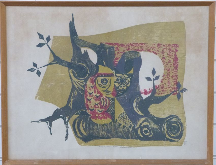 Limited edition (25/50) retro abstract print signed Eichner Edmonton and dated 1969, 47 x 62cm