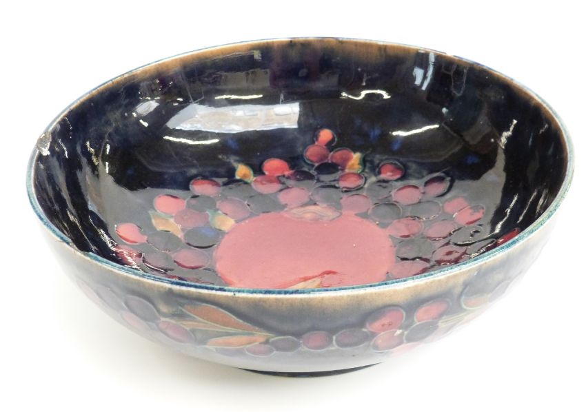 Moorcroft pedestal bowl decorated in the pomegranate pattern with impressed signature to base, H7 x diameter 20cm