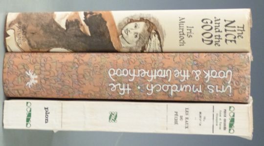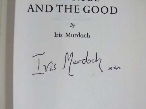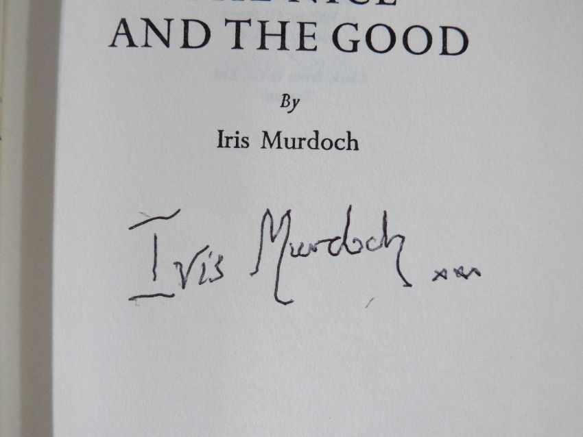 Iris Murdoch, The Nice and the Good (Chatto & Windus, 1968).  Brown boards.  First edition, first printing.  Very good dust wrapper. Signed by Murdoch at the start of her illness on the title page.   Iris Murdoch, The Book of the Brotherhood (Chatto & Windus, 1987).  First edition, first printing in fine dust wrapper.  Iris Murdoch, Les Eaux Péché .  A rare French edition of her novel The Bell (Plon, 1958).  Signed and dedicated on the ffep by Iris Murdoch at the start of her illness.