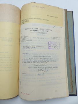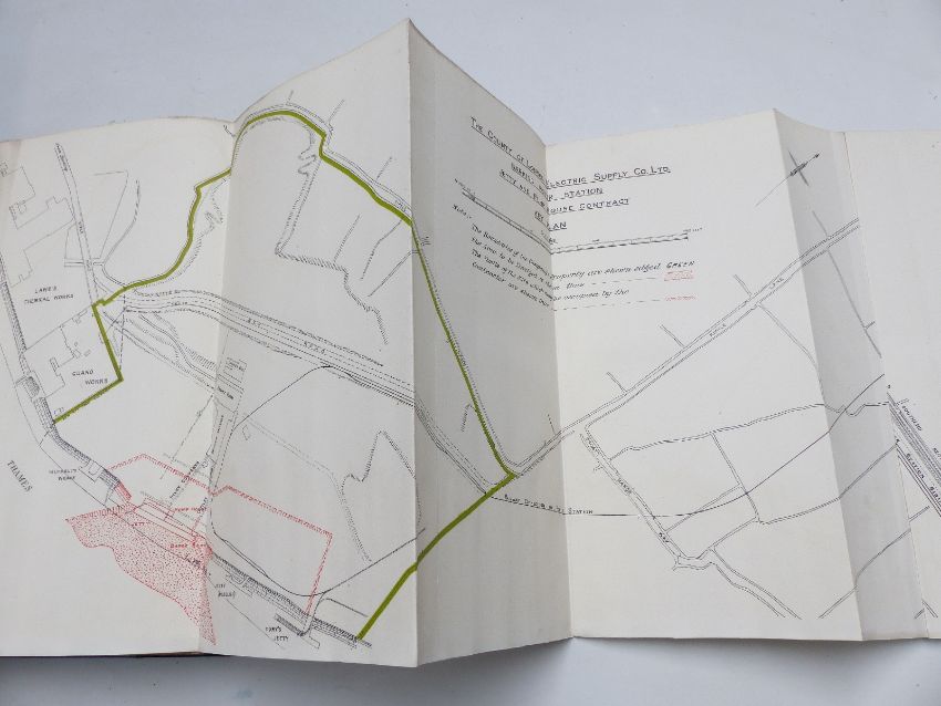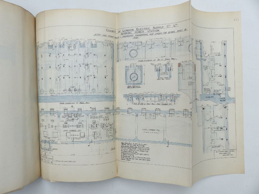 Five 1920's bound volumes of civil engineering interest correspondence relating to the Barking Power Station, being the bound records of Alexander Gibb & Partners, Queen Anne's Lodge, Westminster, including materials and labour lists including costs, plans including fold out examples, correspondence with contractors etc