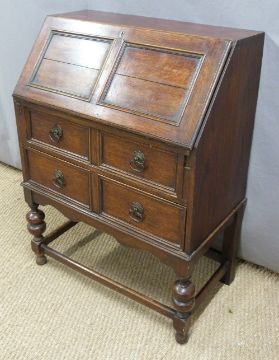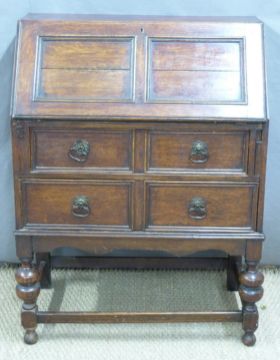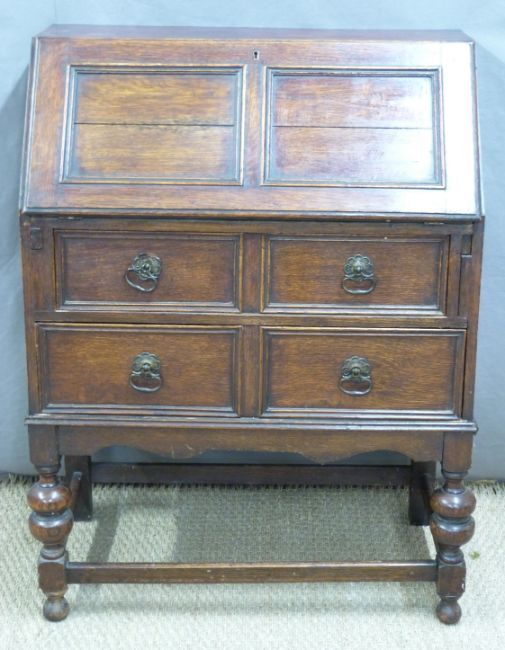 Oak bureau with fall flap above two drawers, W74 x D39 x H99cm