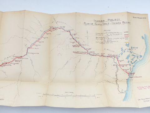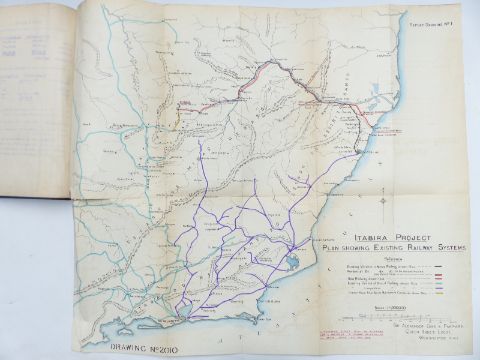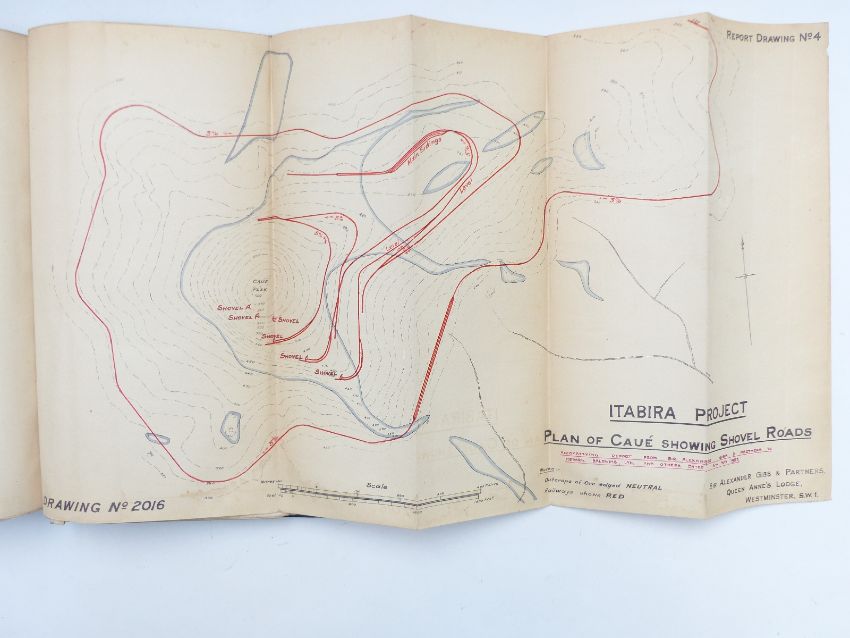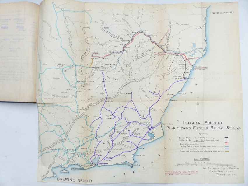 Two 1920's bound volumes of civil engineering interest correspondence relating to railways to Itabira, Brazil, being the bound records of Alexander Gibb & Partners, Queen Anne's Lodge, Westminster, including estimated and correspondence from suppliers and contractors, many fold out plans of proposed layouts and track plans