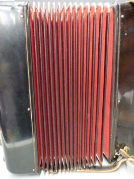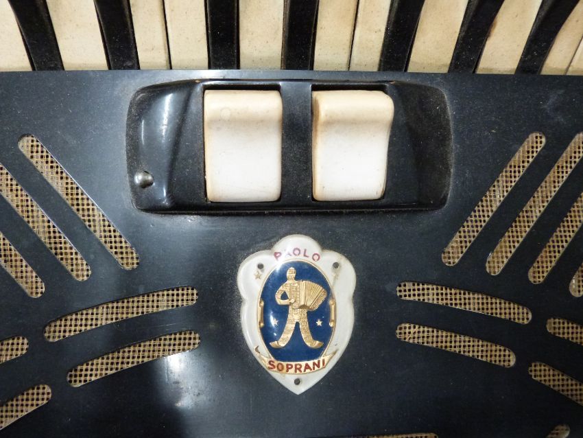 Paolo Soprani 'Italla' Italian piano accordion, 120 bass, 3 1/2 treble octaves, two treble couplers, with vintage canvas carry case