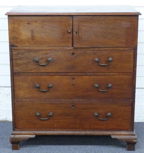 Georgian mahogany chest of drawers comprising for drawers behind hinged cupboard and three long drawers below, W96 x D51 x H106cm
