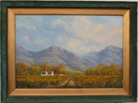 Henri du Rand acrylic on board South African landscape 'Constantia' (Cape Town), signed lower left, 34 x 50cm