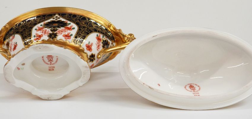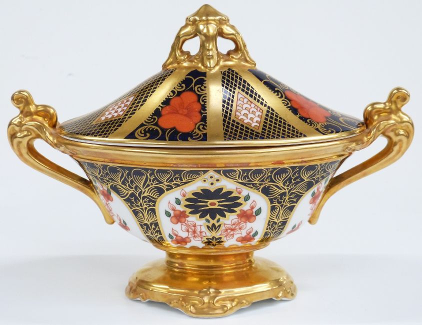 Royal Crown Derby Imari 1128 pattern twin-handled pedestal covered urn, H14cm
