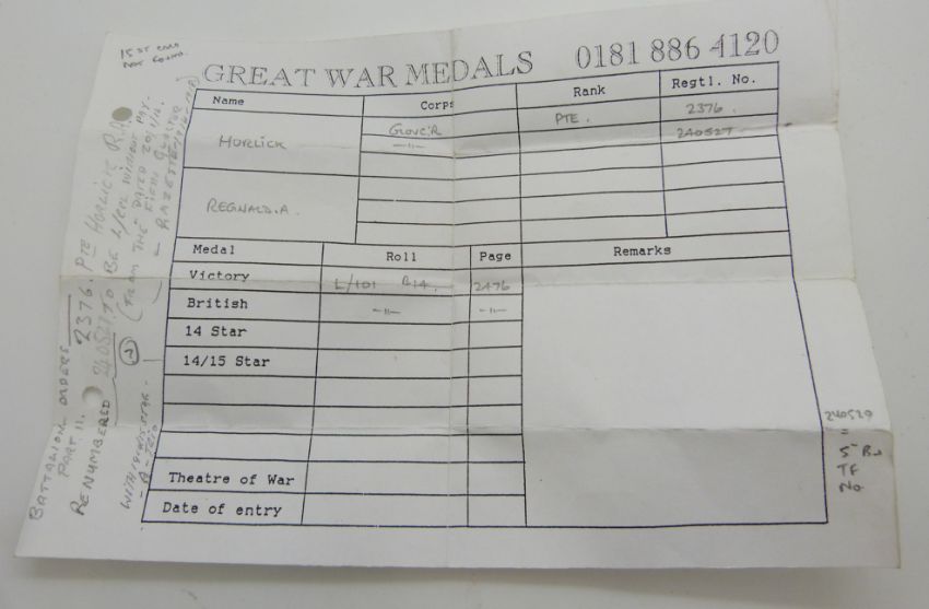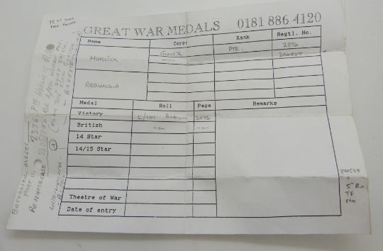 British Army WWI Medals comprising 1914/1915 Star, War Medal and Victory Medal, named to 2376 Pte R A Horlick Glosters/ Gloucestershire Regiment (Star named to G A Horlick)