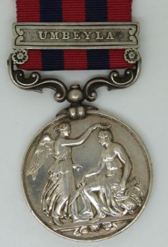Indian Army India General Service Medal (1854) with clasp for Umbeyla, named to Lieutenant H R Young, 1st Battalion Punjab Infantry