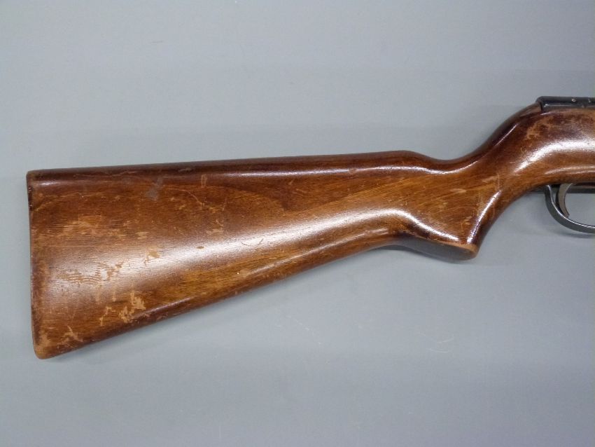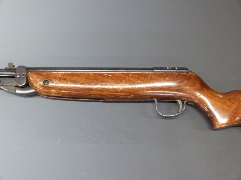 Webley Mark 3 .22 air rifle with semi-pistol grip, adjustable sights and Webley plaque to the stock, serial number A6916