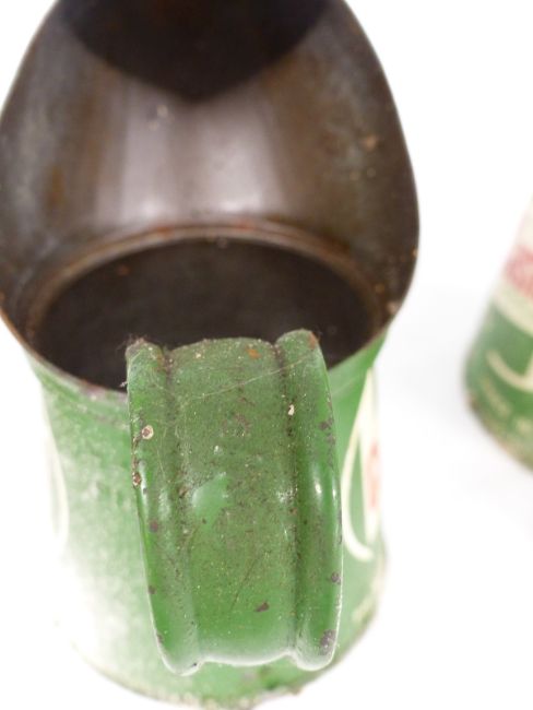 Graduated set of four vintage Castrol oil jugs from quart down to a gill together with a 'Hackney Carriage 6 seats' pressed aluminium sign, width 31cm