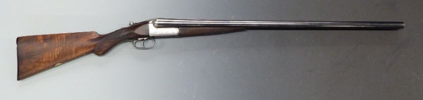 James Woodward & Son 12 bore side by side shotgun with locks named 'J Woodward & Son', engraved locks, underside, trigger guard top plate and thumb lever, chequered semi-pistol grip and horn tipped forend, vacant cartouche to the underside of the stock, double trigger and 28 inch barrels choked full and ¾, overall length 112cm, length of pull 36.5cm, serial number R1012 PLEASE NOTE THAT A VALID RELEVANT FIREARMS/SHOTGUN CERTIFICATE IS REQUIRED TO HANDLE/PURCHASE THIS ITEM.
