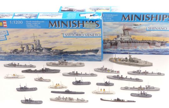 Twenty-one Neptun and similar diecast model waterline ships including Terror, Stuart, Savage etc, largest 10cm long