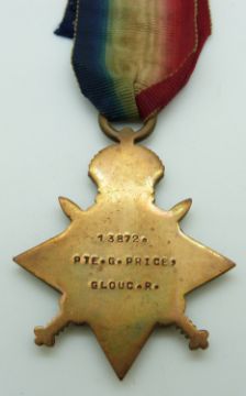 British Army WWI 1914/1915 Star named to 13872 Pte G Price 8th Battalion Glosters/ Gloucestershire Regiment