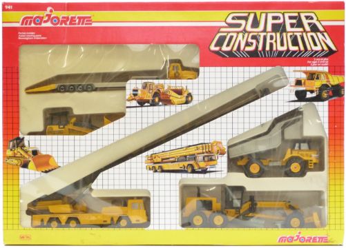 Two model construction sets Majorette Super Construction and Star Toy friction powered Construction Team, both in original boxes.